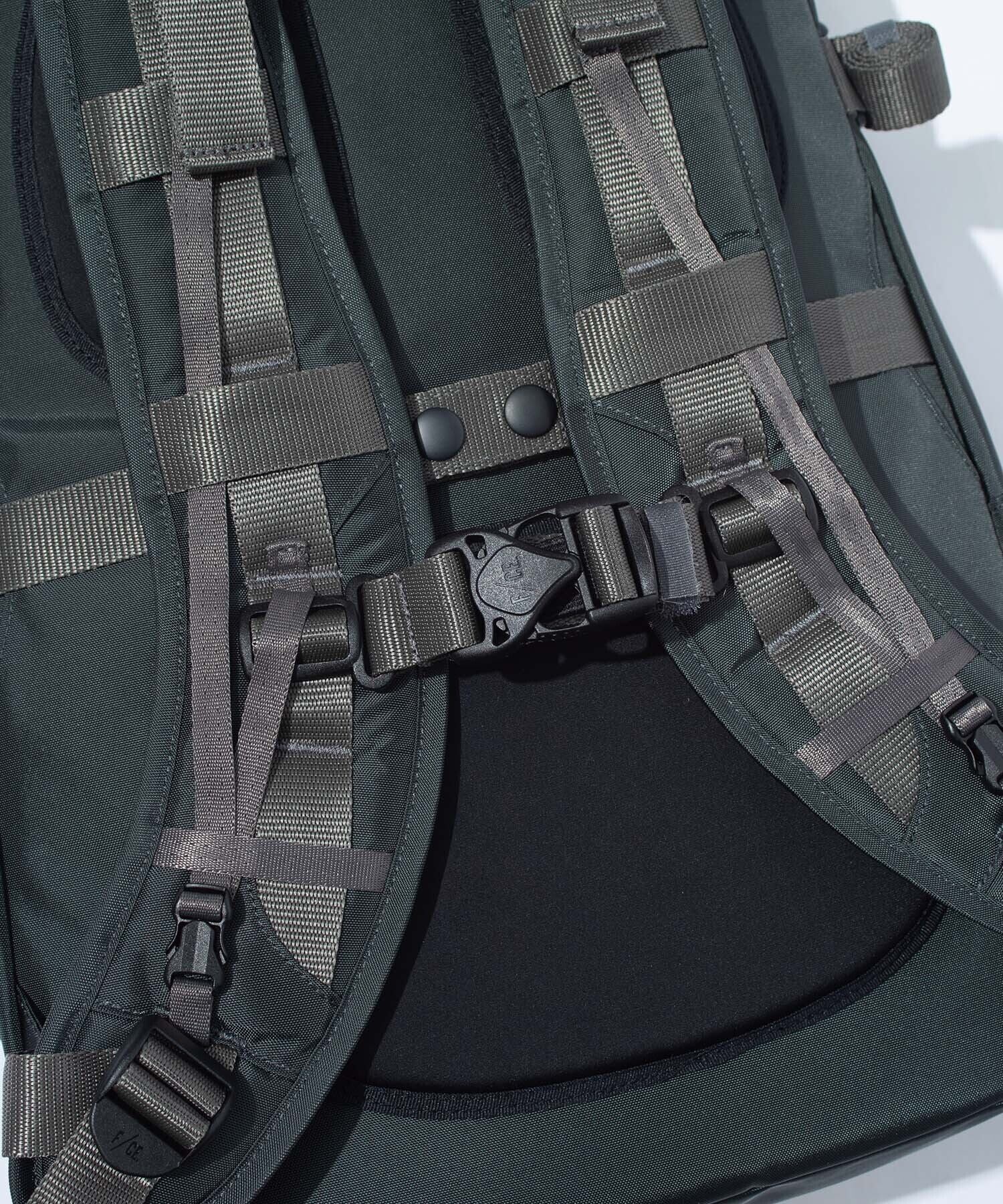 1泊2日用の旅を想定し設計された33Lのデイパックです。Cordura初の100% リサイクルナイロンテキスタイル、Cordura_ re/cor使用しています。